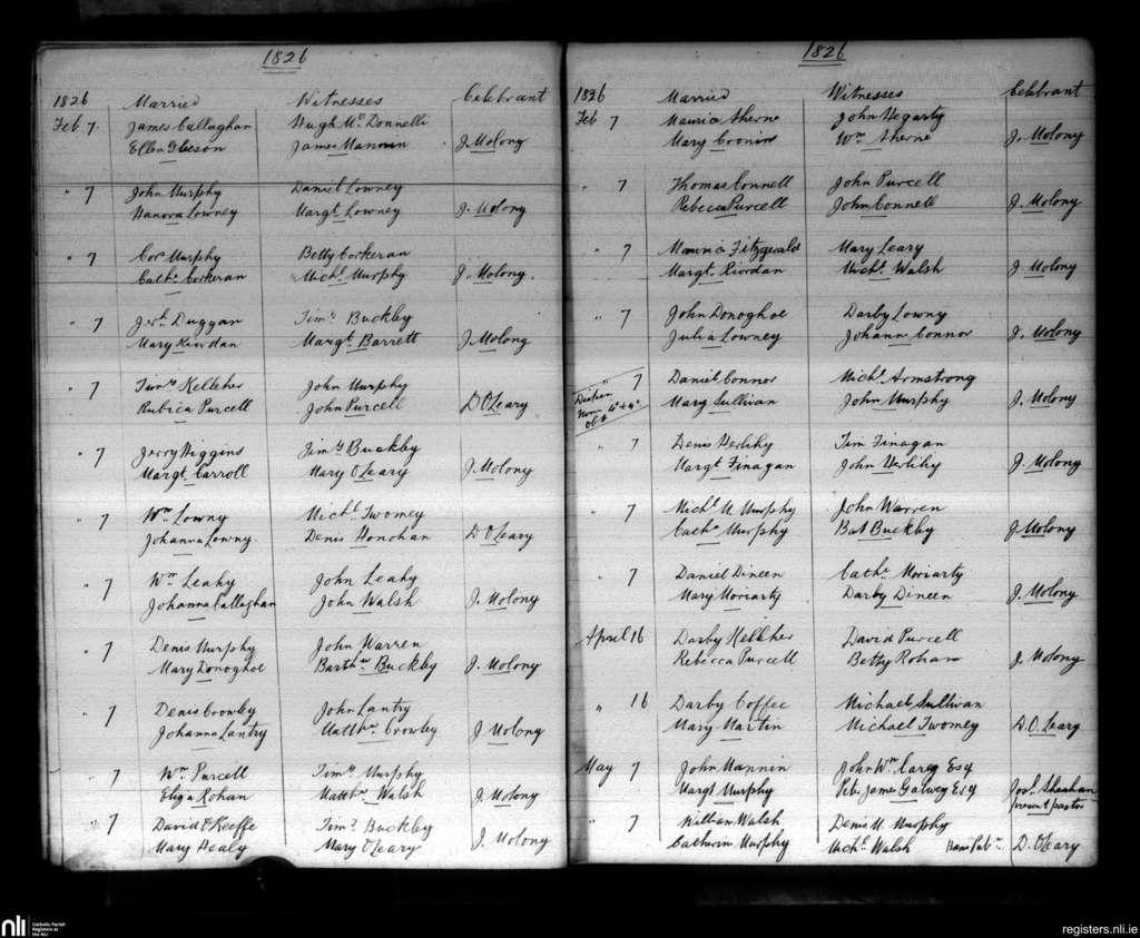 Aghabulloge; County of Cork; Diocese of Cloyne. Marriages, Feb. 1826 to May 1826