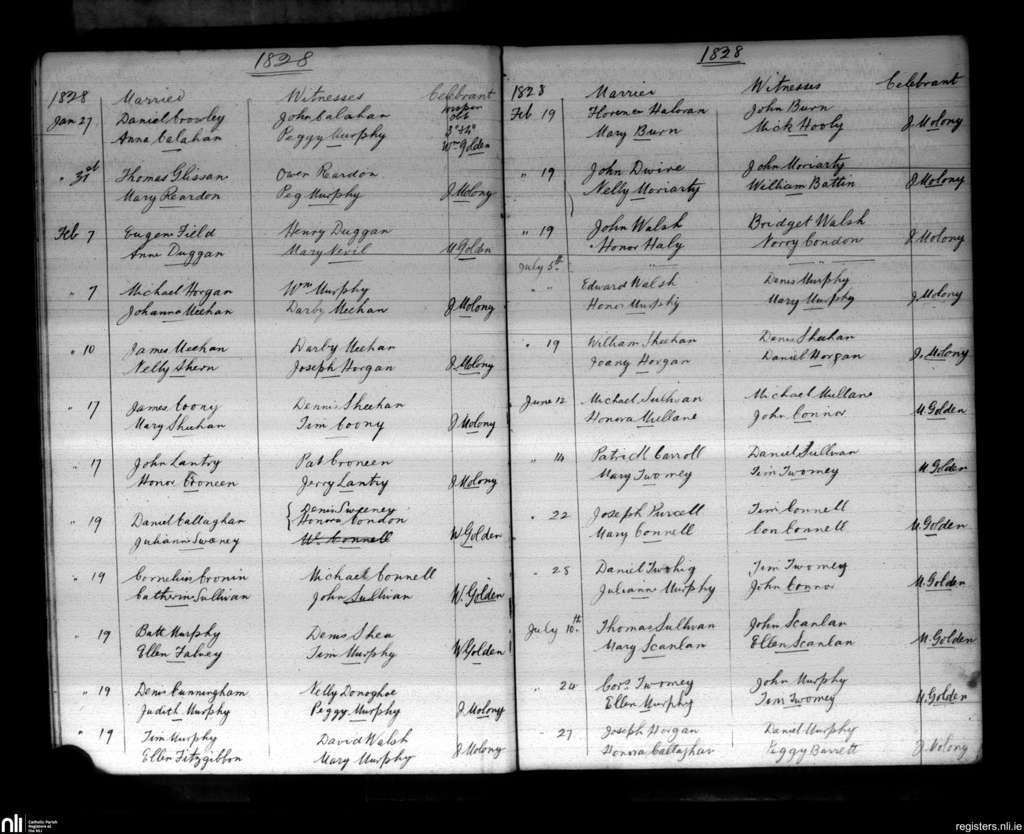 Aghabulloge; County of Cork; Diocese of Cloyne. Marriages, Jan. 1828 to July 1828