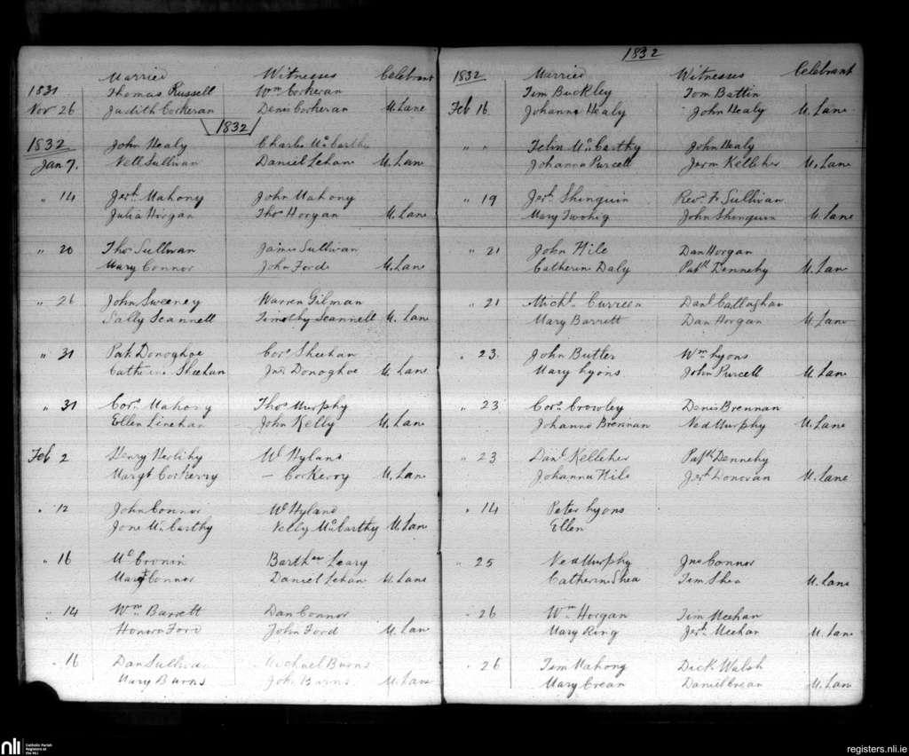 Aghabulloge; County of Cork; Diocese of Cloyne. Marriages, Nov. 1831 to Feb. 1832