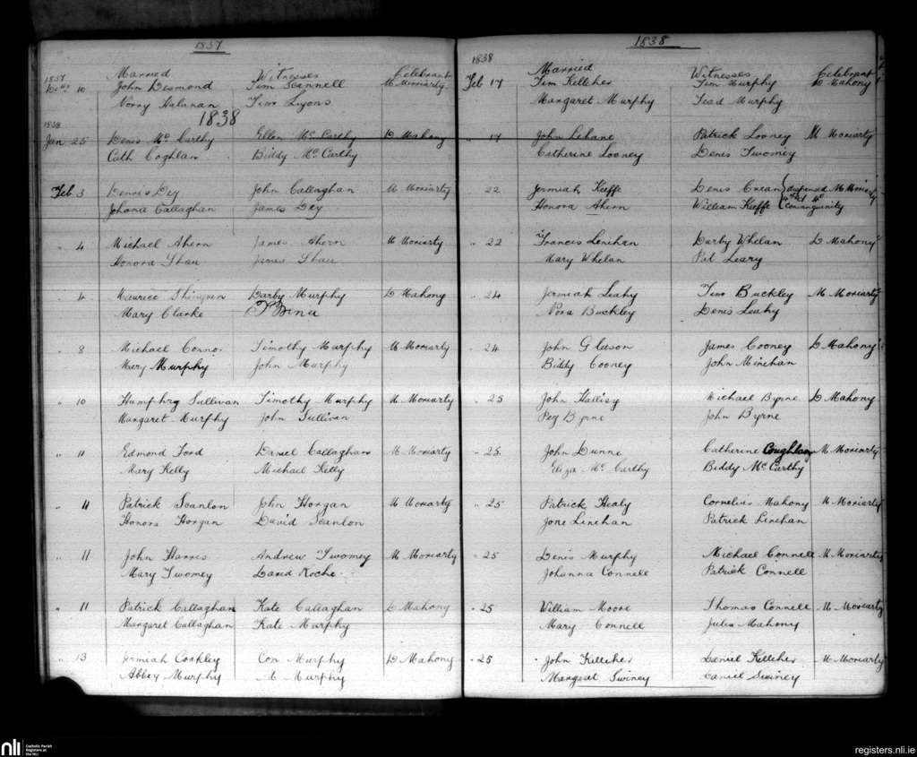 Aghabulloge; County of Cork; Diocese of Cloyne. Marriages, Dec. 1837 to Feb. 1838