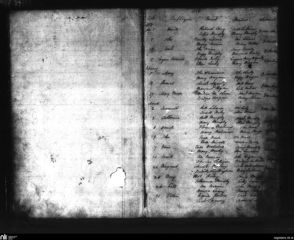Aghabulloge; County of Cork; Diocese of Cloyne. Baptisms, Jan. 1856 to Mar. 1856
