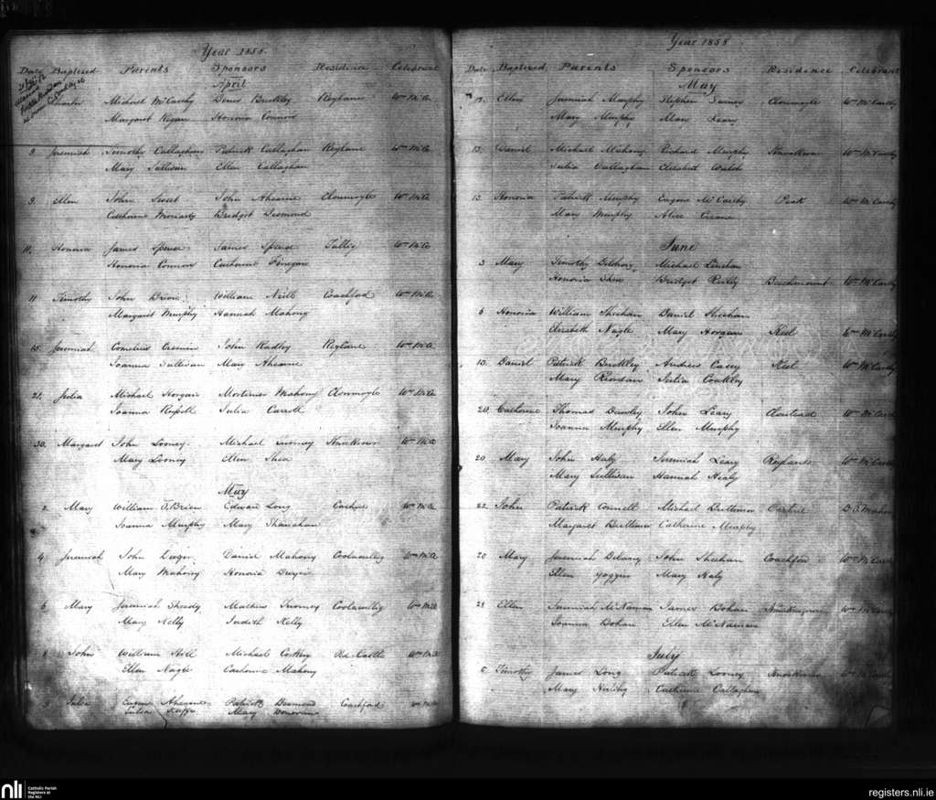 Aghabulloge; County of Cork; Diocese of Cloyne. Baptisms, Apr. 1858 to July 1858