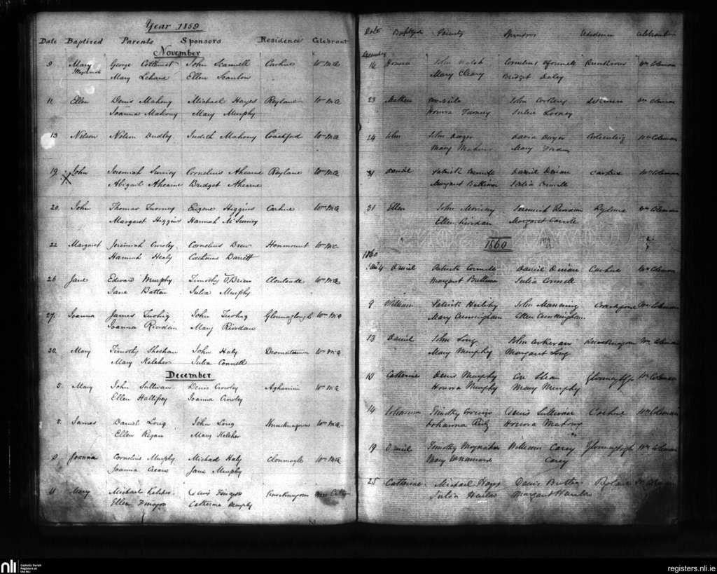 Aghabulloge; County of Cork; Diocese of Cloyne. Baptisms, Nov. 1859 to Jan. 1860