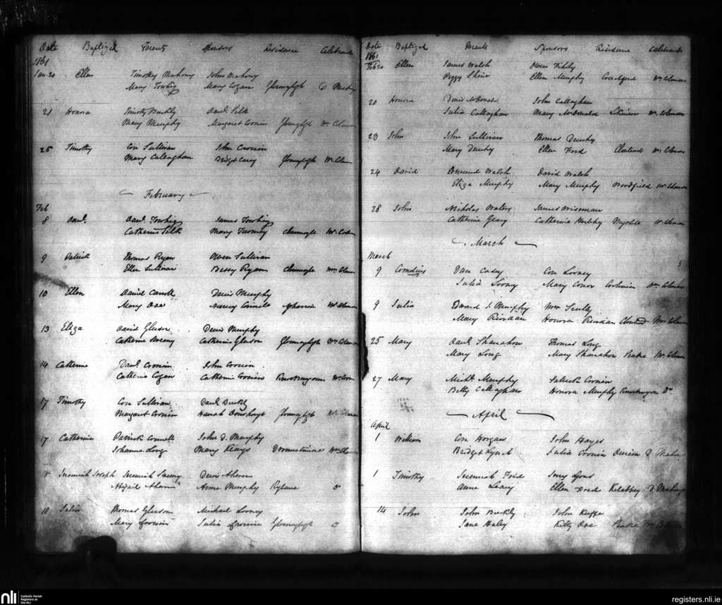 Aghabulloge; County of Cork; Diocese of Cloyne. Baptisms, Jan. 1861 to Apr. 1861