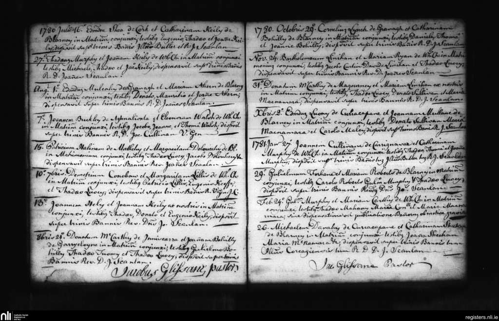 Blarney; County of Cork; Diocese of Cloyne. Marriages, July 1780 to Feb. 1781