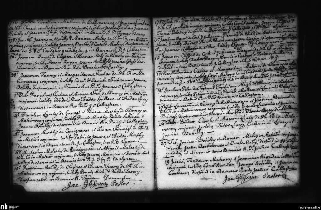 Blarney; County of Cork; Diocese of Cloyne. Marriages, Nov. 1786 to June 1787