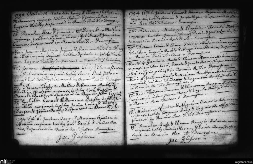 Blarney; County of Cork; Diocese of Cloyne. Marriages, Oct. 1793 to May 1794