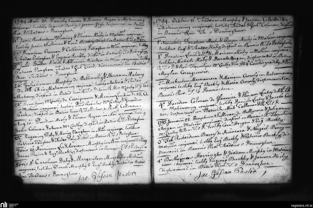 Blarney; County of Cork; Diocese of Cloyne. Marriages, May 1794 to Feb. 1795