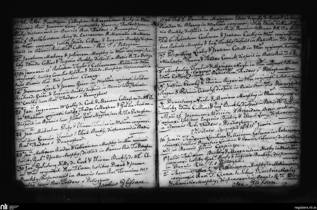 Blarney; County of Cork; Diocese of Cloyne. Marriages, Nov. 1795 to July 1796
