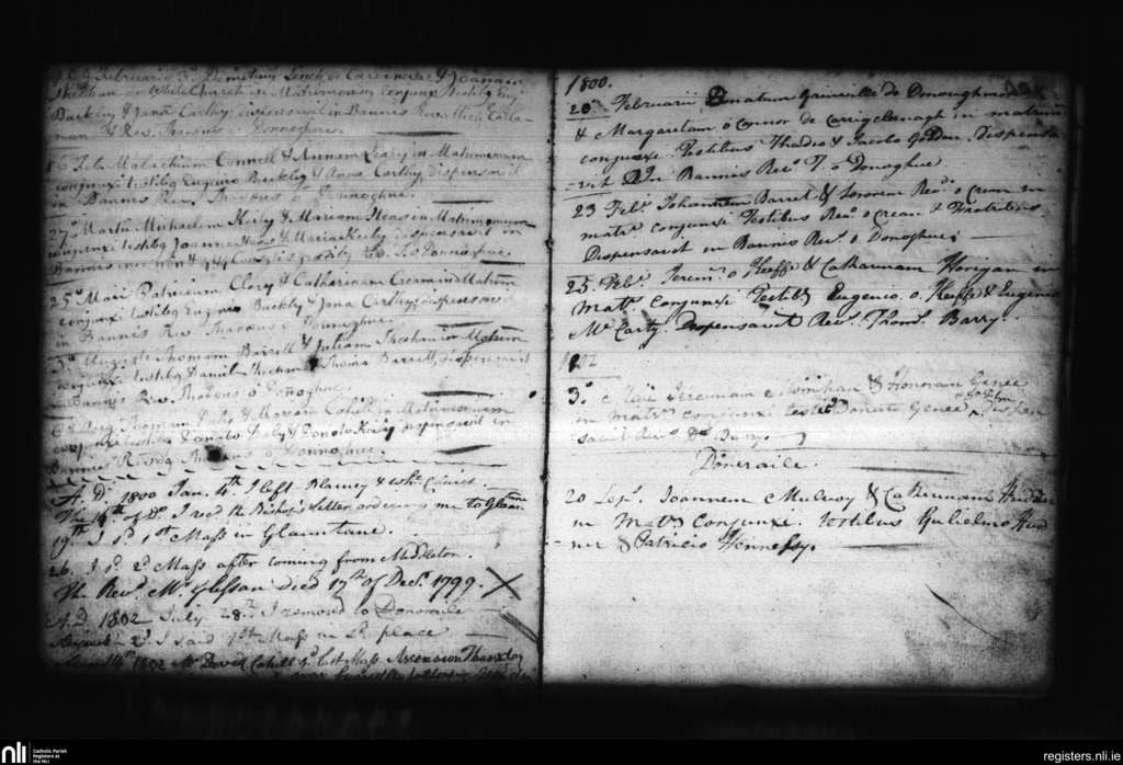 Blarney; County of Cork; Diocese of Cloyne. Marriages, Feb. 1799 to Sep. 1800