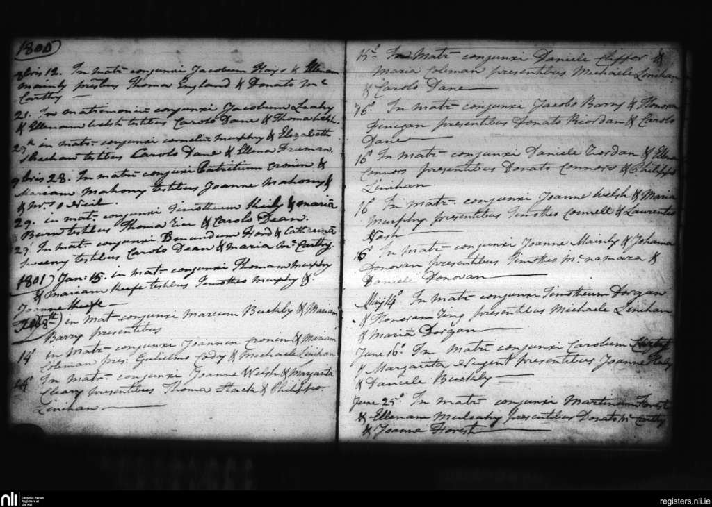 Blarney; County of Cork; Diocese of Cloyne. Marriages, Oct. 1800 to June 1801