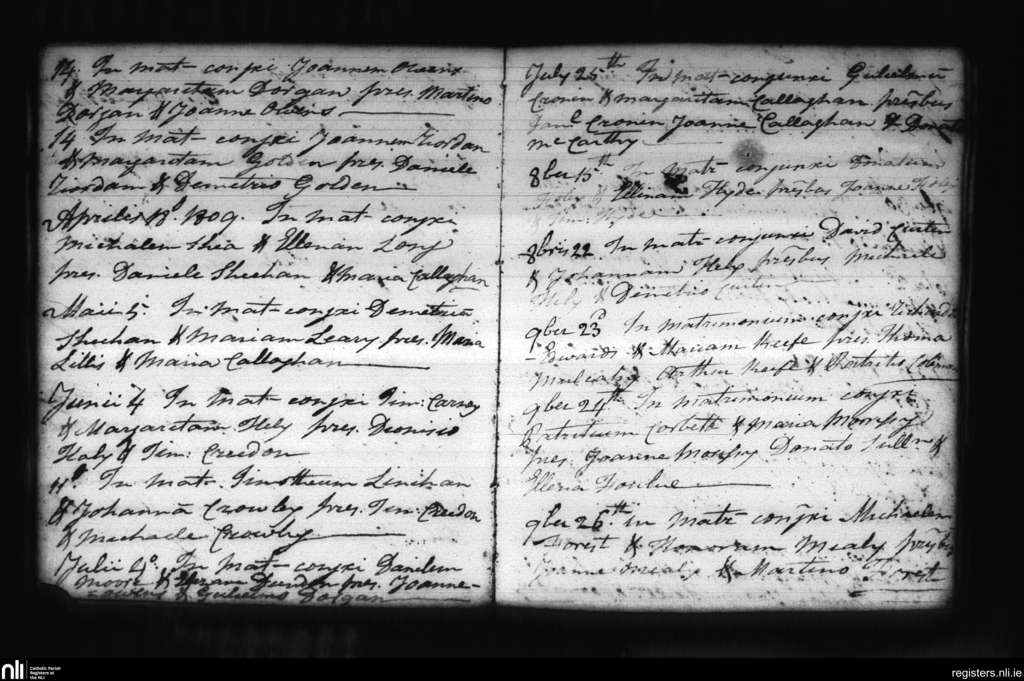 Blarney; County of Cork; Diocese of Cloyne. Marriages, Feb. 1809 to Nov. 1809