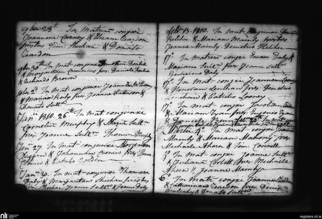 Blarney; County of Cork; Diocese of Cloyne. Marriages, Nov. 1809 to Feb. 1810