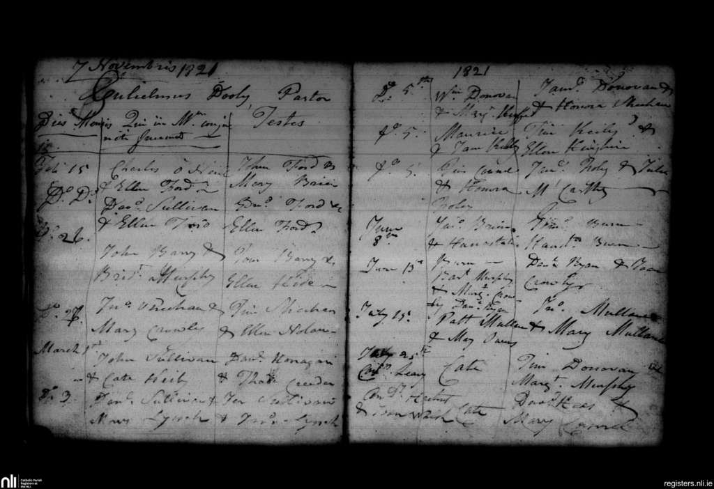 Blarney; County of Cork; Diocese of Cloyne. Marriages, Feb. 1821 to July 1821