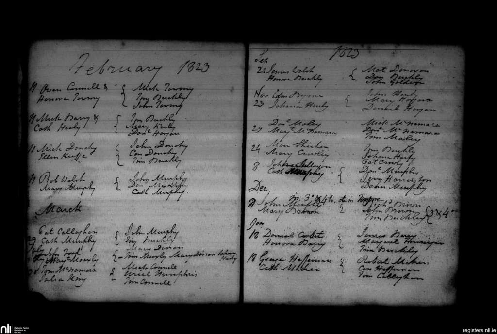 Blarney; County of Cork; Diocese of Cloyne. Marriages, Feb. 1823 to Jan. 1824
