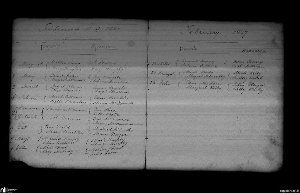 Blarney; County of Cork; Diocese of Cloyne. Baptisms, Feb. 1827