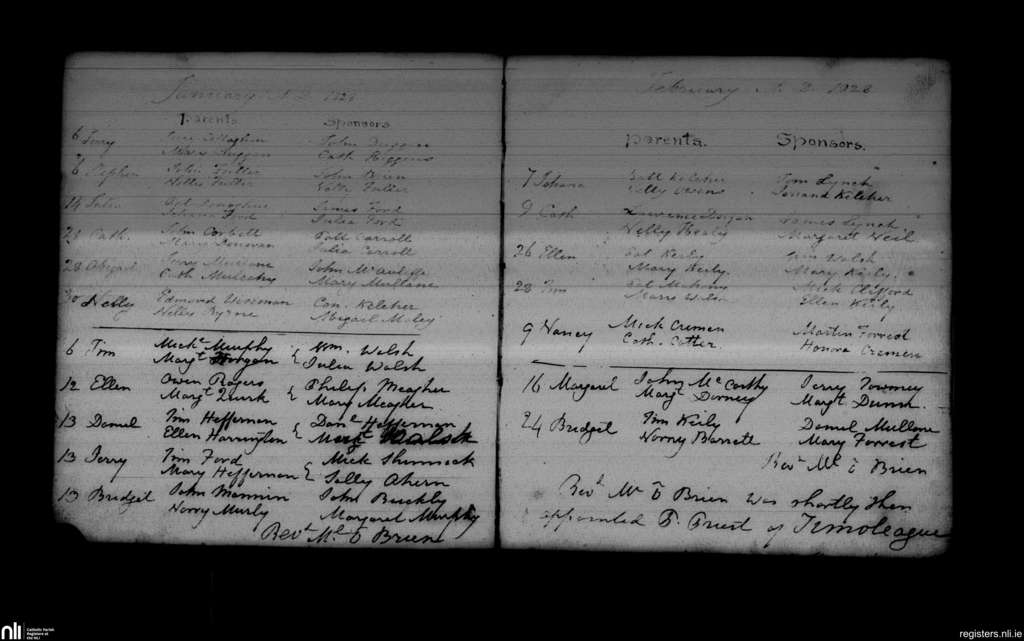 Blarney; County of Cork; Diocese of Cloyne. Baptisms, Jan. 1828 to Feb. 1828
