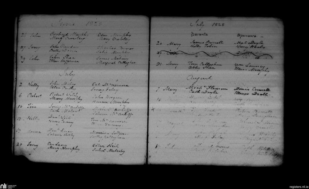 Blarney; County of Cork; Diocese of Cloyne. Baptisms, June 1828 to Aug. 1828