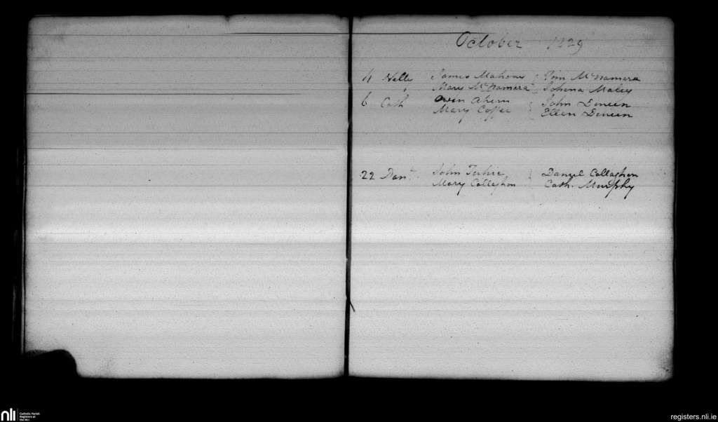 Blarney; County of Cork; Diocese of Cloyne. Baptisms, Oct. 1829