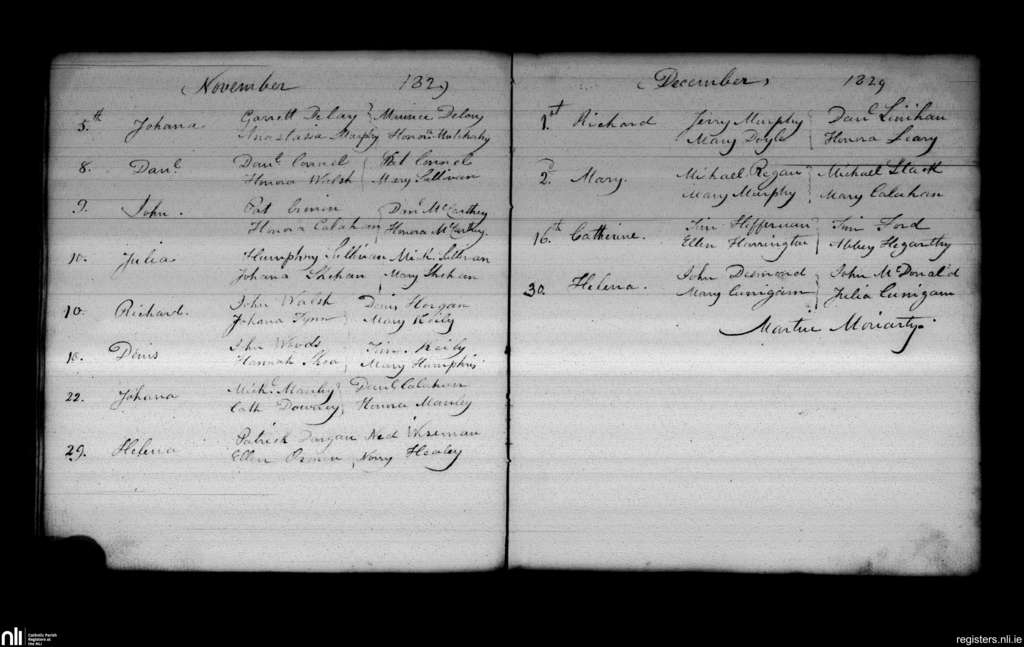 Blarney; County of Cork; Diocese of Cloyne. Baptisms, Nov. 1829 to Dec. 1829