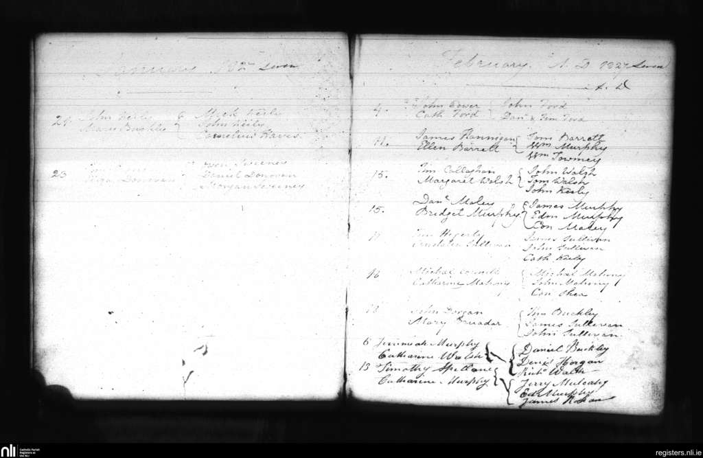 Blarney; County of Cork; Diocese of Cloyne. Marriages, Jan. 1827 to Feb. 1827