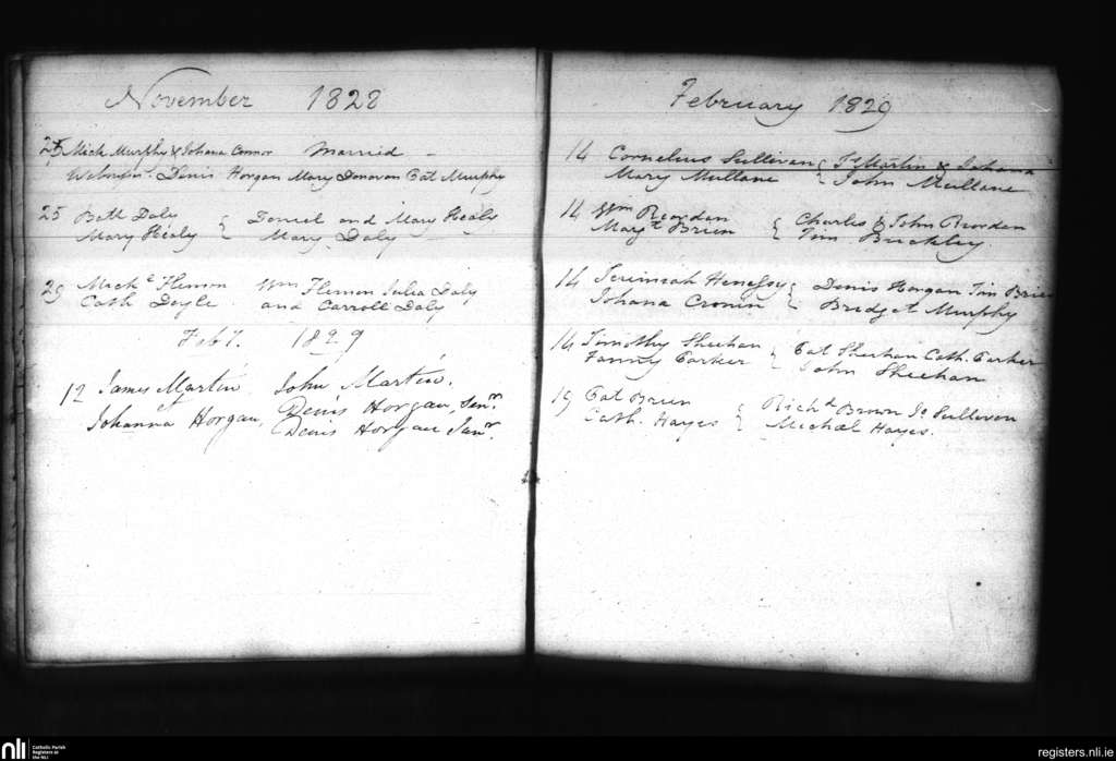 Blarney; County of Cork; Diocese of Cloyne. Marriages, Nov. 1828 to Feb. 1829