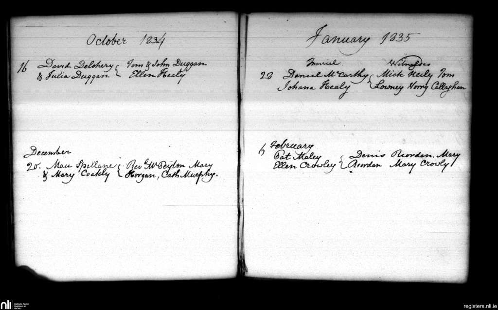 Blarney; County of Cork; Diocese of Cloyne. Marriages, Oct. 1834 to Feb. 1835