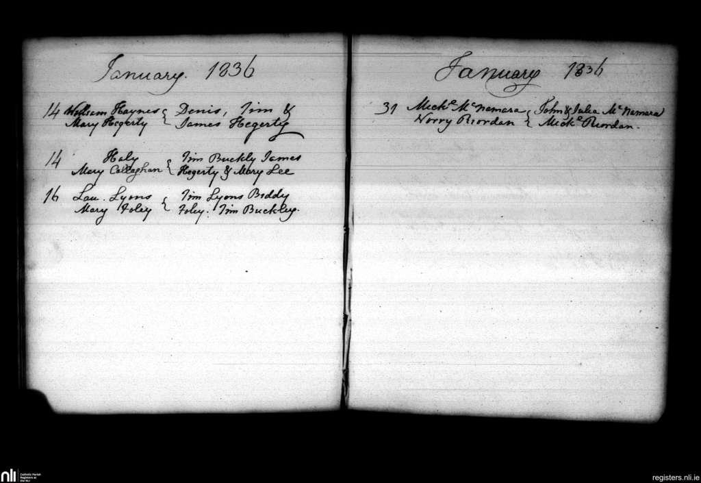 Blarney; County of Cork; Diocese of Cloyne. Marriages, Jan. 1836