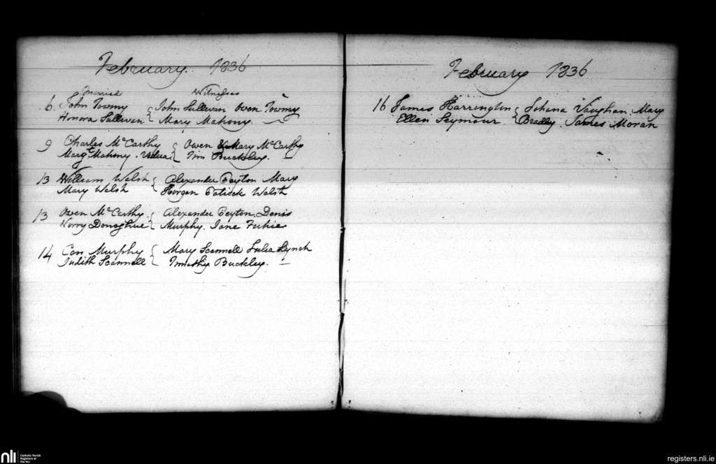 Blarney; County of Cork; Diocese of Cloyne. Marriages, Feb. 1836