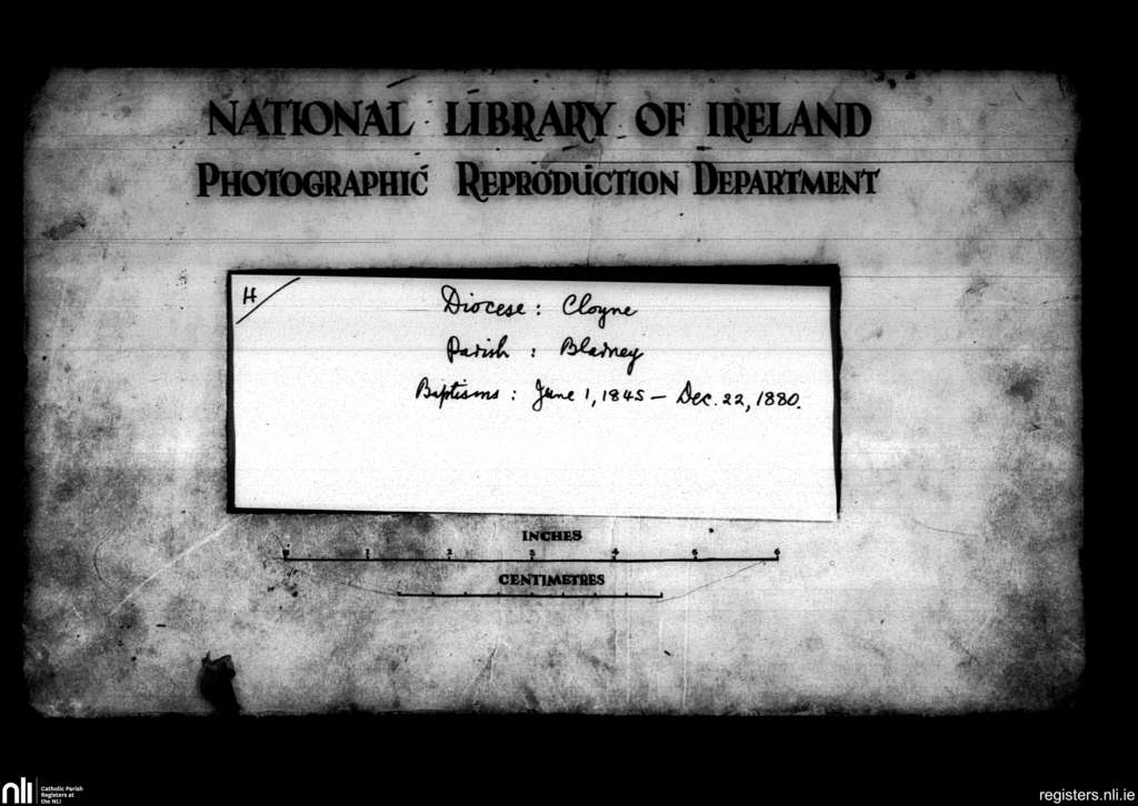 Blarney; County of Cork; Diocese of Cloyne. Baptisms