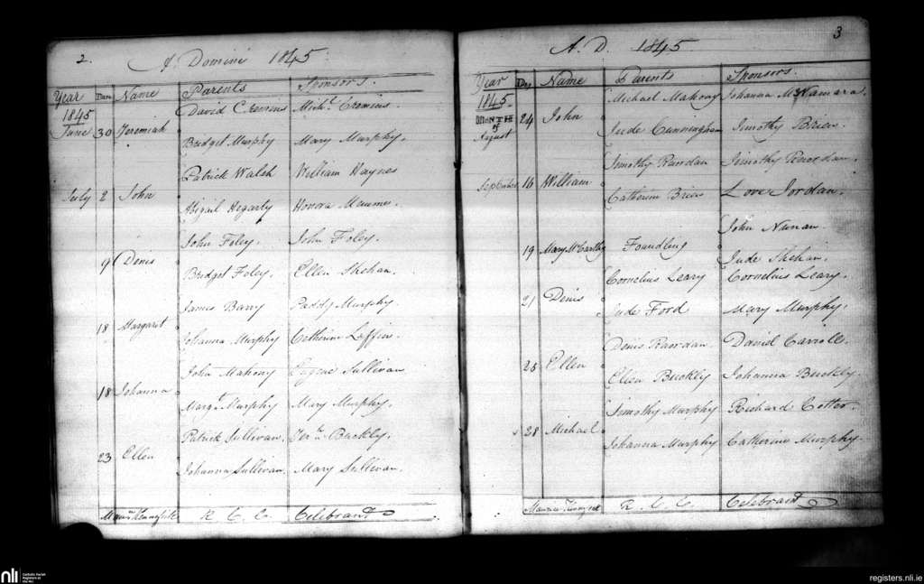 Blarney; County of Cork; Diocese of Cloyne. Baptisms, June 1845 to Sep. 1845