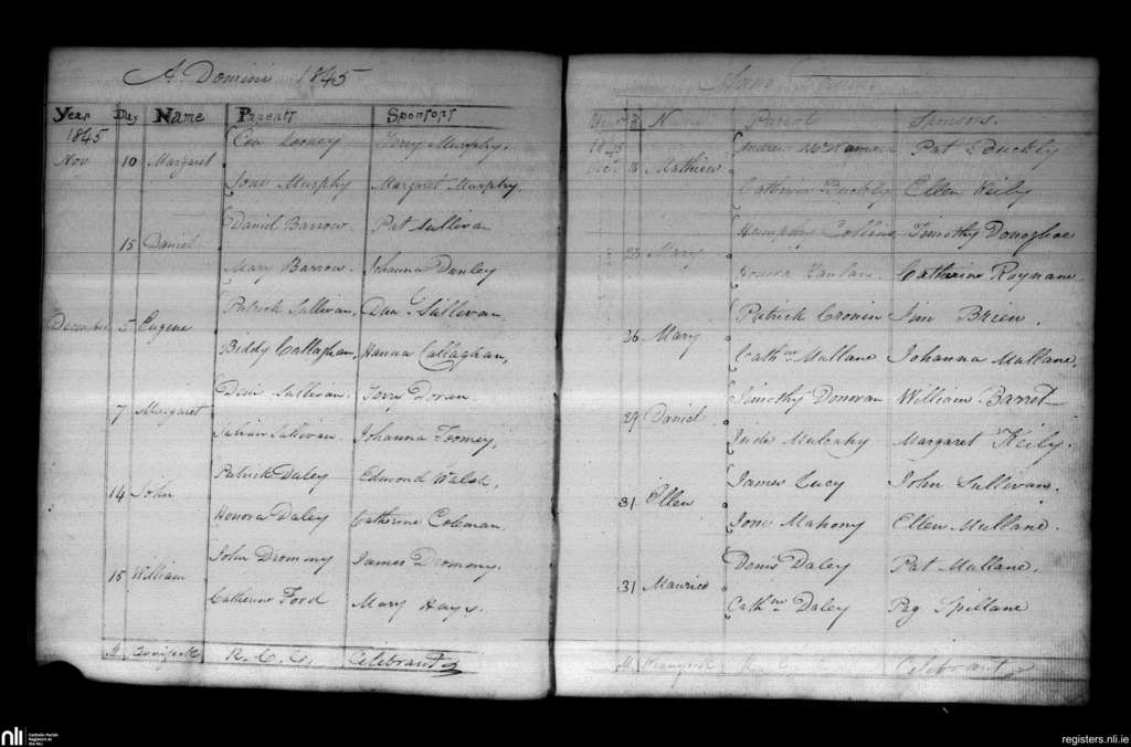 Blarney; County of Cork; Diocese of Cloyne. Baptisms, Nov. 1845 to Dec. 1845