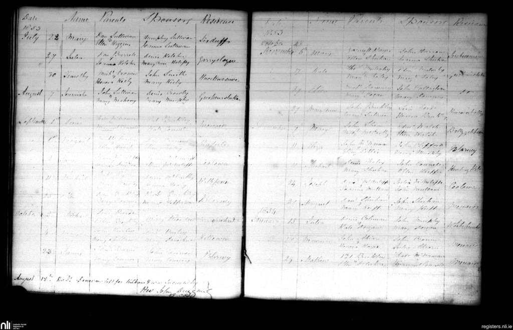 Blarney; County of Cork; Diocese of Cloyne. Baptisms, July 1853 to Jan. 1854