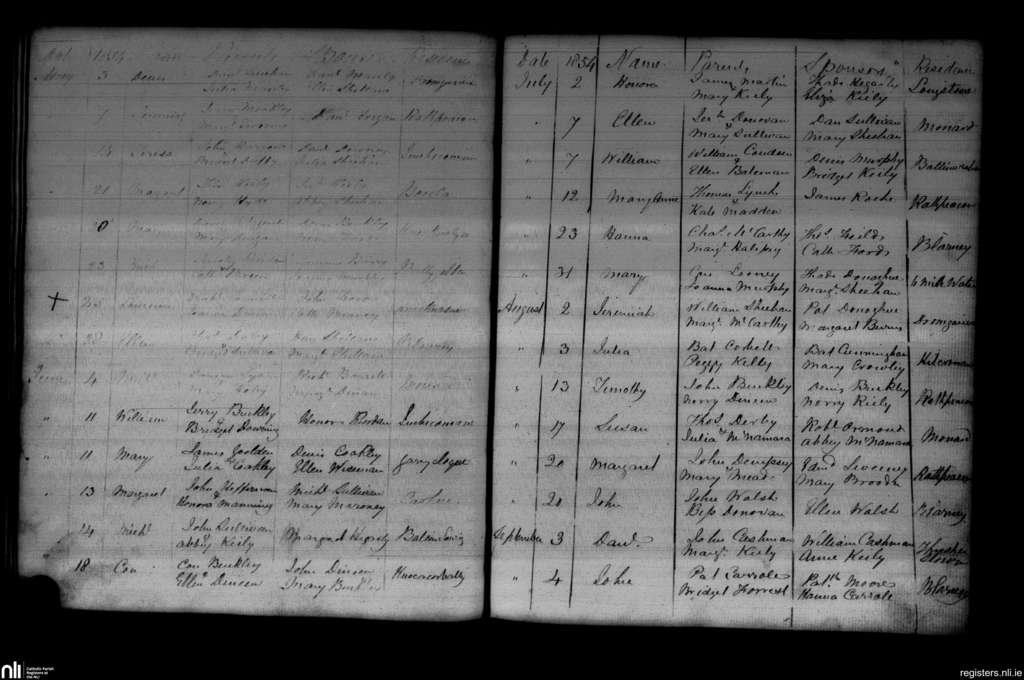 Blarney; County of Cork; Diocese of Cloyne. Baptisms, May 1854 to Sep. 1854