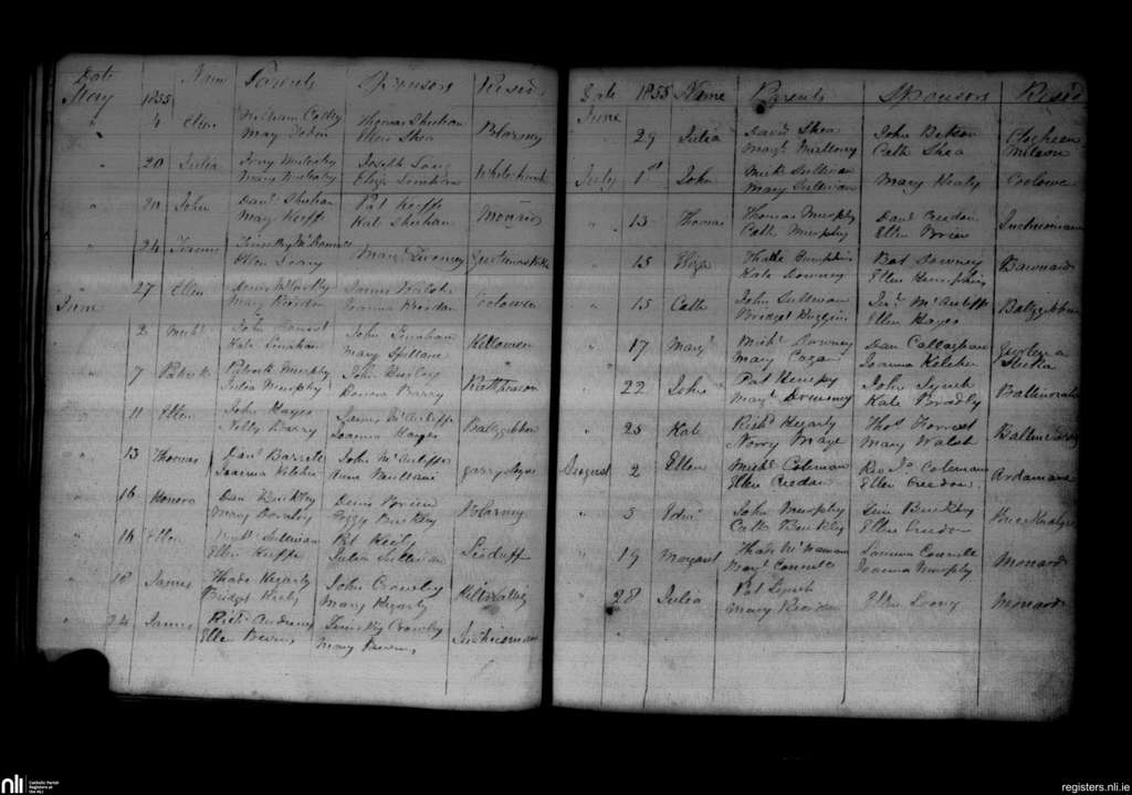 Blarney; County of Cork; Diocese of Cloyne. Baptisms, May 1855 to Aug. 1855