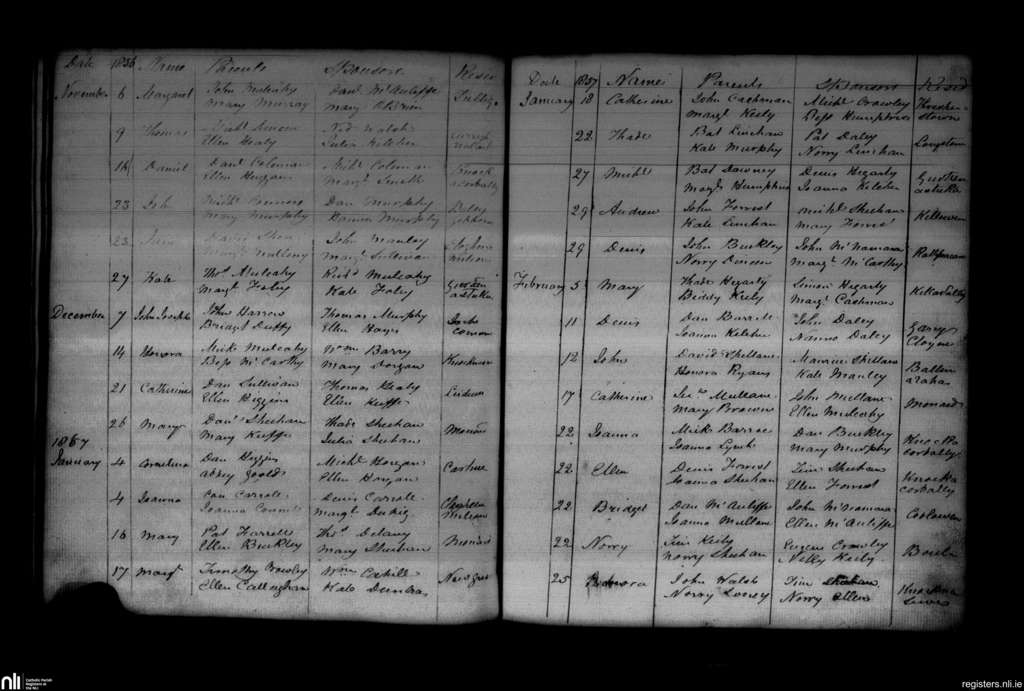 Blarney; County of Cork; Diocese of Cloyne. Baptisms, Nov. 1856 to Feb. 1857