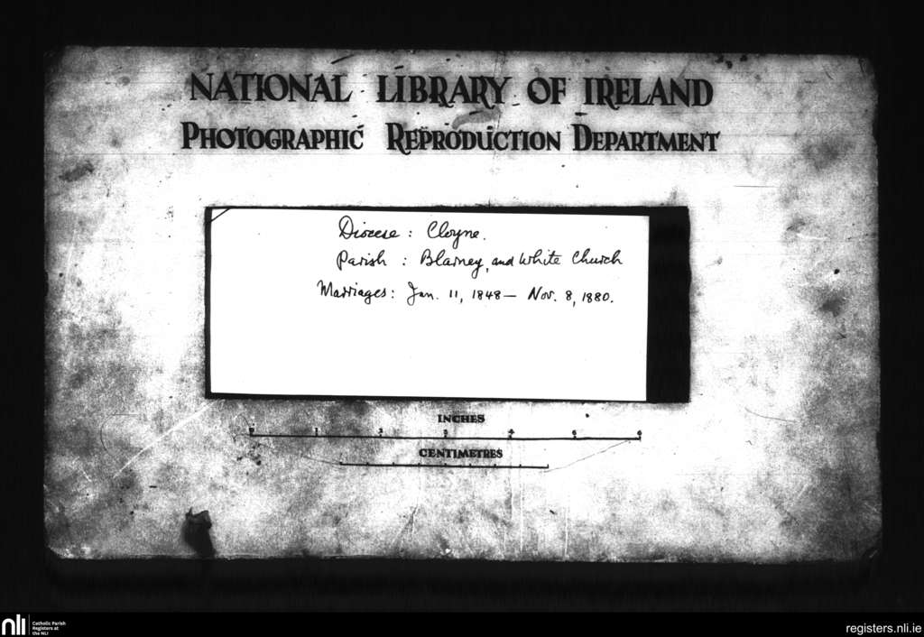 Blarney; County of Cork; Diocese of Cloyne. Marriages