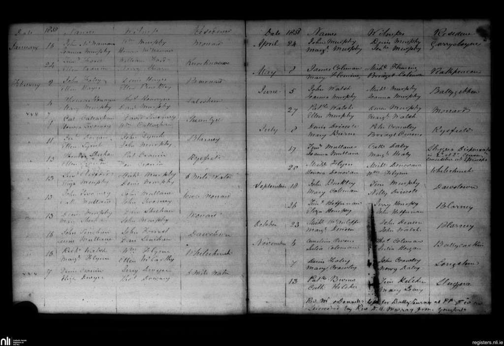 Blarney; County of Cork; Diocese of Cloyne. Marriages, Jan. 1858 to Nov. 1858