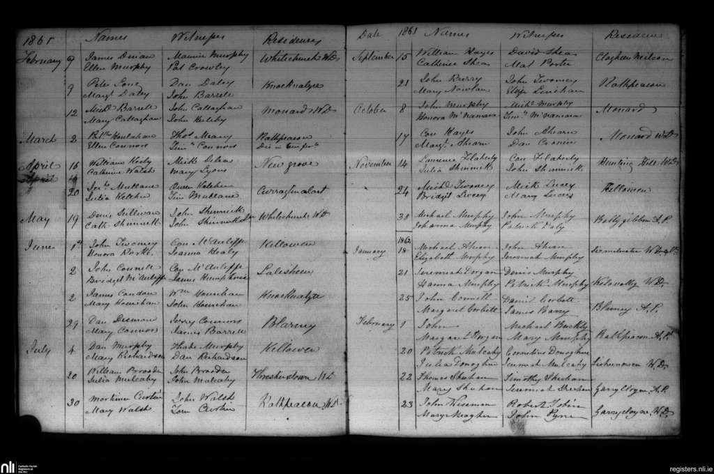 Blarney; County of Cork; Diocese of Cloyne. Marriages, Feb. 1861 to Feb. 1862