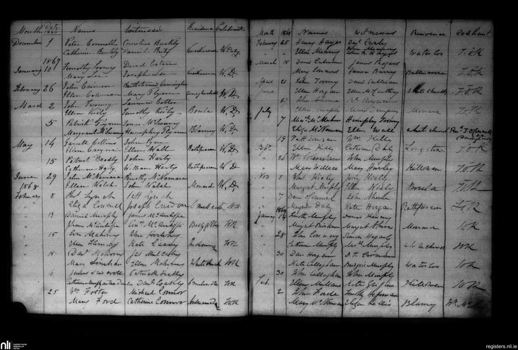 Blarney; County of Cork; Diocese of Cloyne. Marriages, Dec. 1866 to June 1869