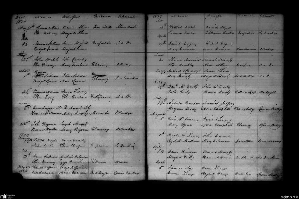 Blarney; County of Cork; Diocese of Cloyne. Marriages, May 1876 to Dec. 1877
