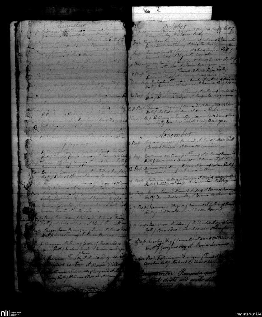 Collon; County of Meath, Louth; Archdiocese of Armagh. Baptisms, Aug. 1798 to Nov. 1798