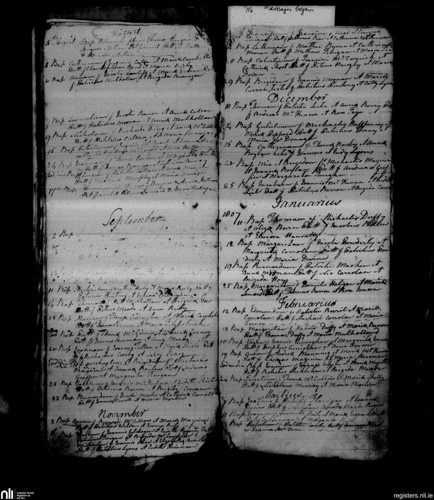 Collon; County of Meath, Louth; Archdiocese of Armagh. Baptisms, Aug. 1806 to Mar. 1807