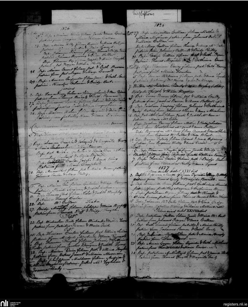 Collon; County of Meath, Louth; Archdiocese of Armagh. Baptisms, May 1826 to Feb. 1827