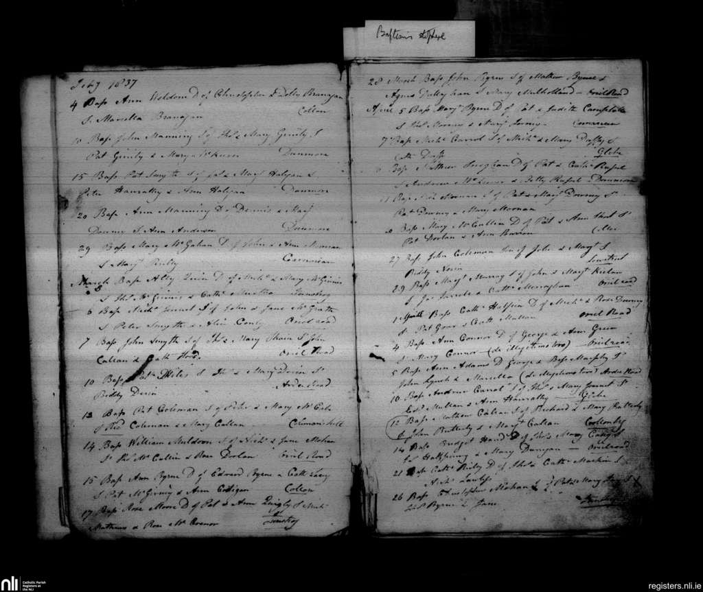 Collon; County of Louth, Meath; Archdiocese of Armagh. Baptisms, Feb. 1837 to Apr. 1837
