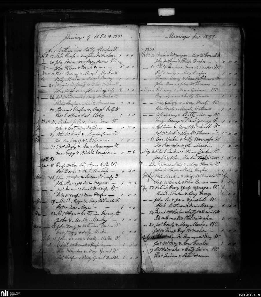 Creggan Lower; County of Armagh; Archdiocese of Armagh. Marriages, Oct. 1850 to July 1851