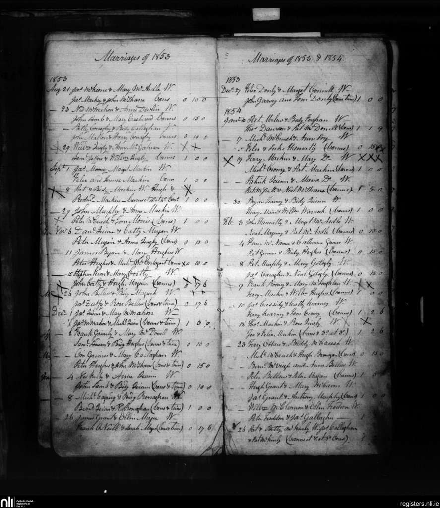 Creggan Lower; County of Armagh; Archdiocese of Armagh. Marriages, Aug. 1853 to Feb. 1854