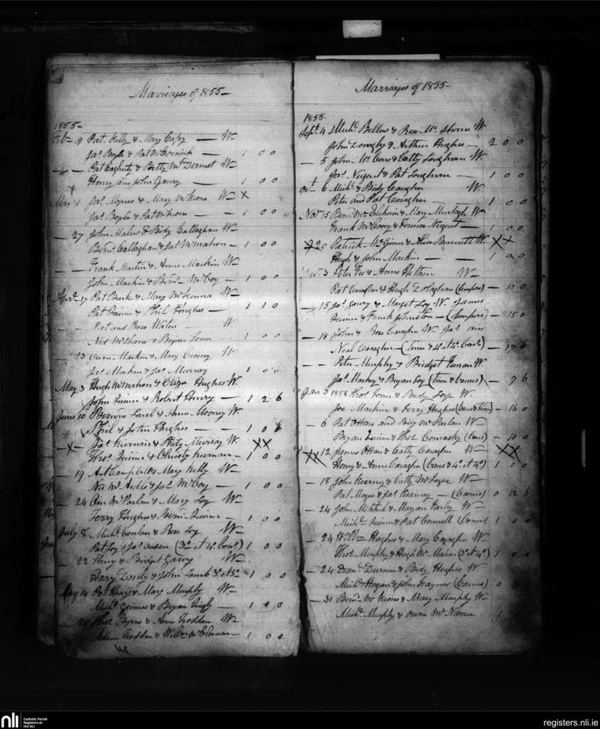 Creggan Lower; County of Armagh; Archdiocese of Armagh. Marriages, Feb. 1855 to Jan. 1856