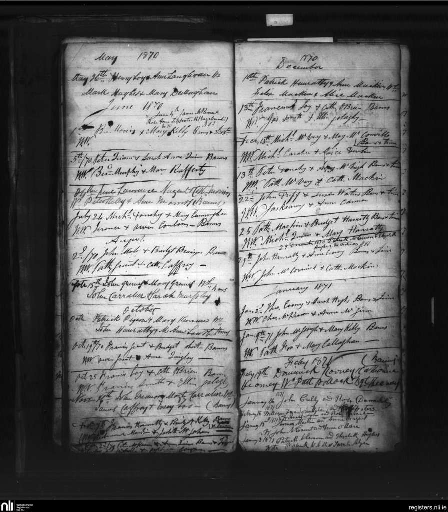Creggan Lower; County of Armagh; Archdiocese of Armagh. Marriages, May 1870 to Feb. 1871