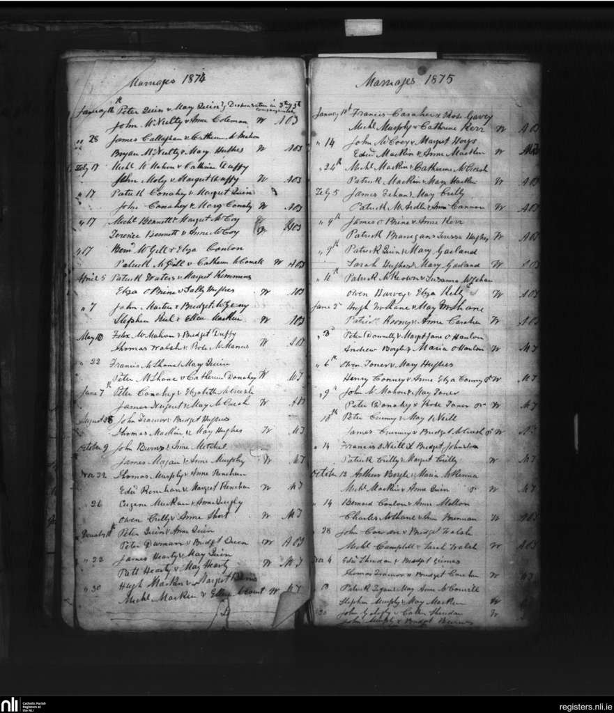 Creggan Lower; County of Armagh; Archdiocese of Armagh. Marriages, Jan. 1874 to Nov. 1875